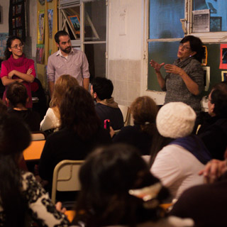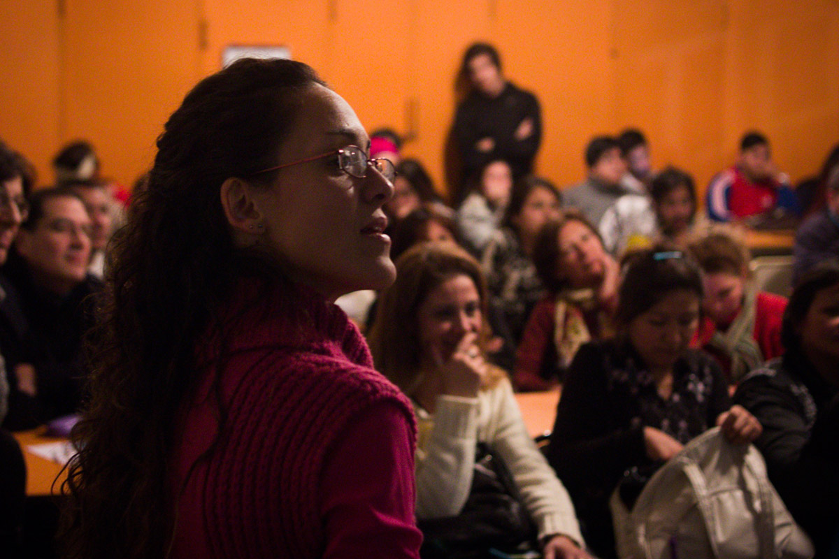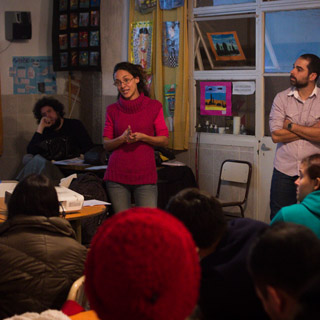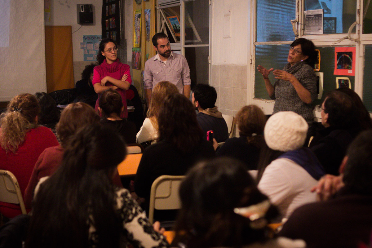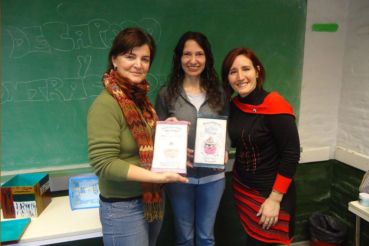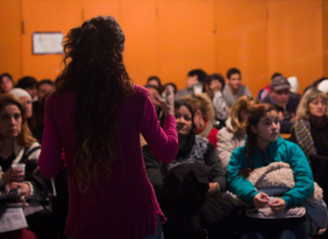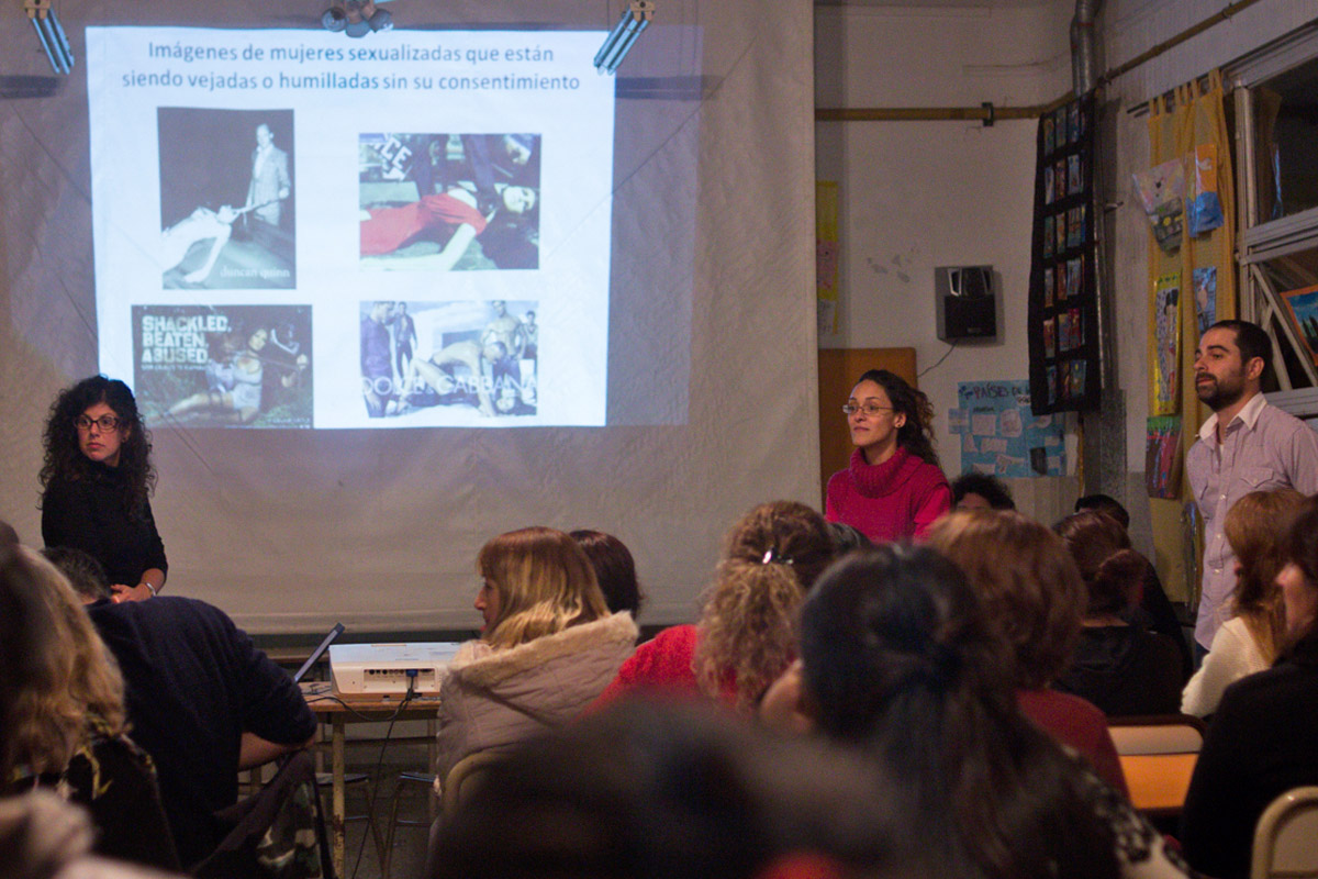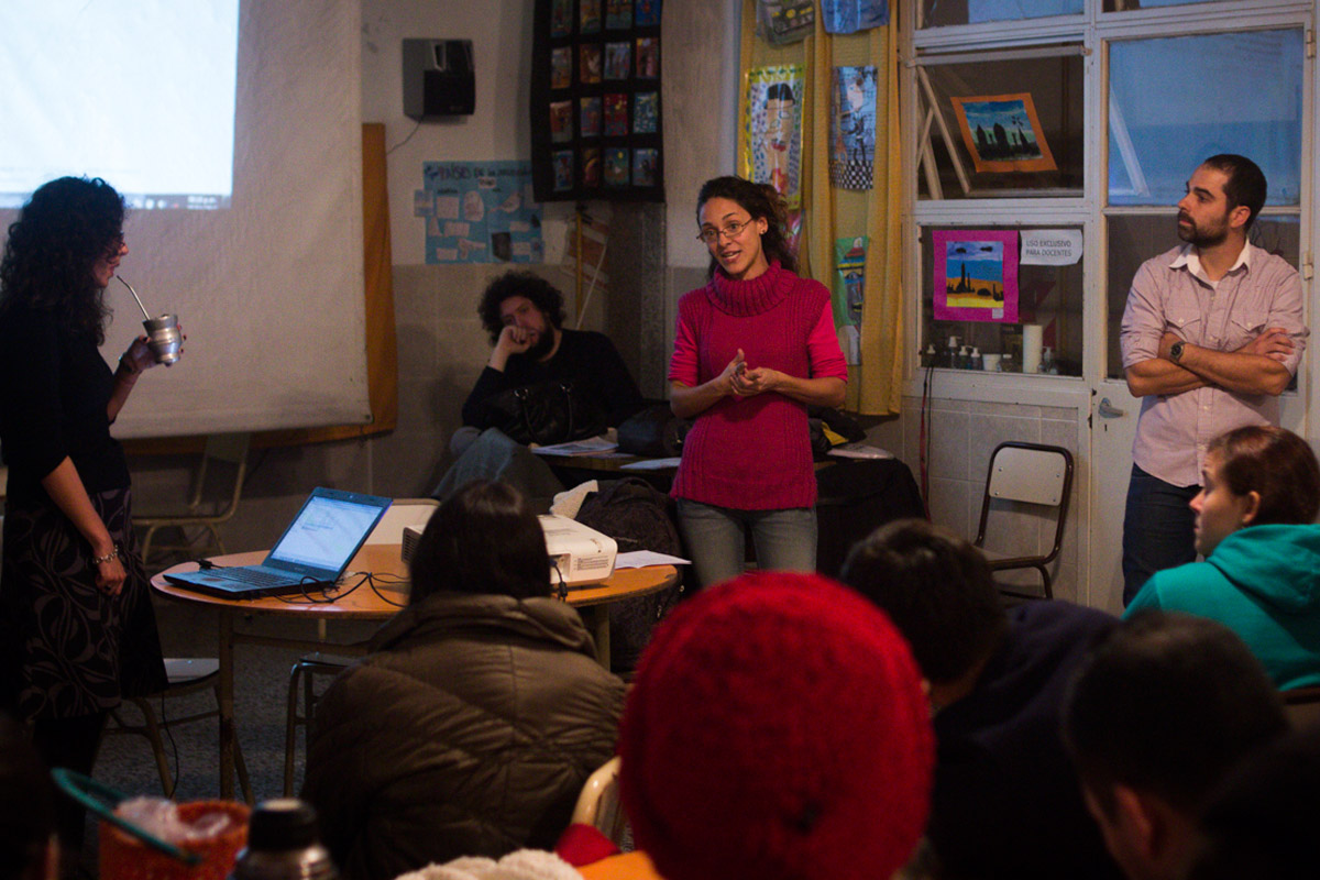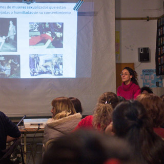 Taller de Prácticas Comunicacionales con enfoque de género en el Centro Educativo de Nivel Secundario (CENS) N°86 dictado por la egresada y docente Mariana Fernández Camacho y Mariano Barragán. La actividad contó con la participación de la egresada Natalia Surraco y de Alba Rueda.